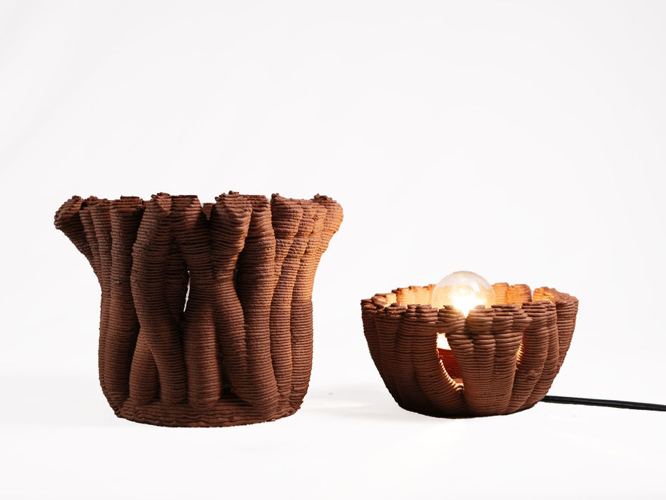 This lamp explores new opportunities for craftsmanship using digital printing technology. The outcome is a candle-warmer lamp that leverages the low thermal conductivity of clay bricks to reduce the melting time of the candle and minimize energy consumption. A candle warmer lamp needs 10 kg waste clay bricks to make. If every person in the United States owns one, it could reduce landfill waste by 34%.